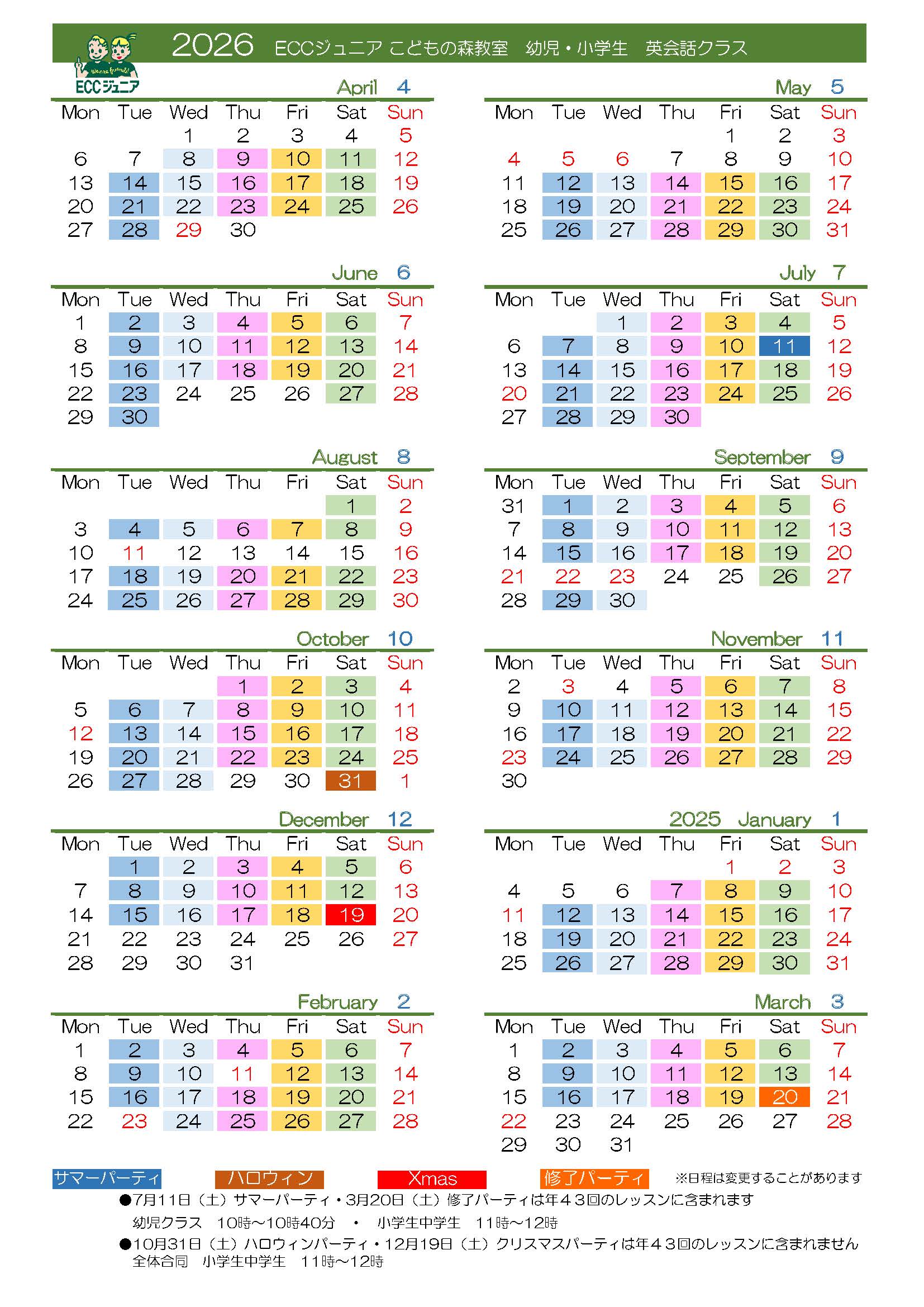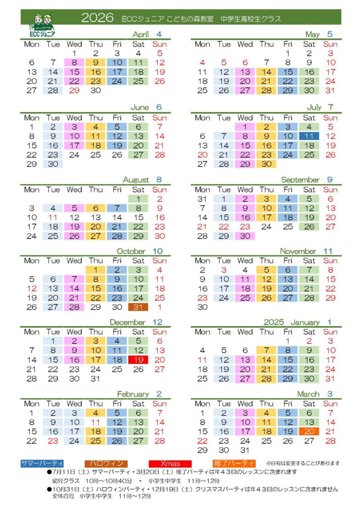 レッスンカレンダー